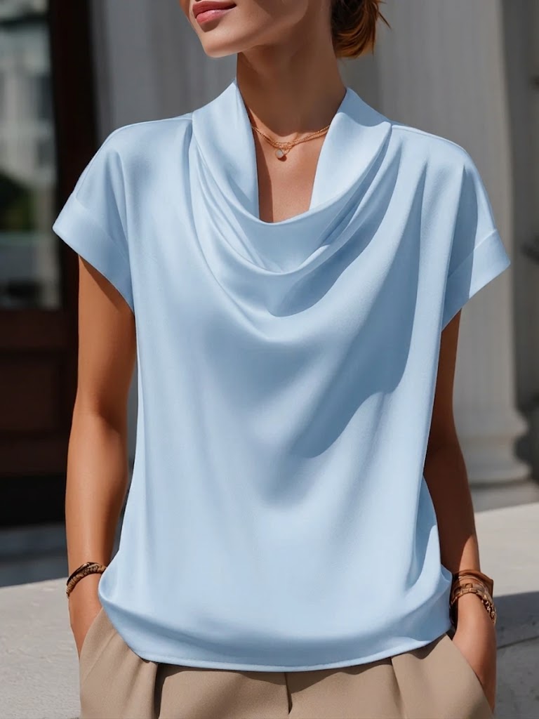 Fashionable And Elegant Scoop-neck Satin Blouse