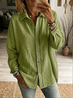 NEW🔥Women's Casual Long-sleeve Linen-cotton Shirt With Spliced cutout Webbing