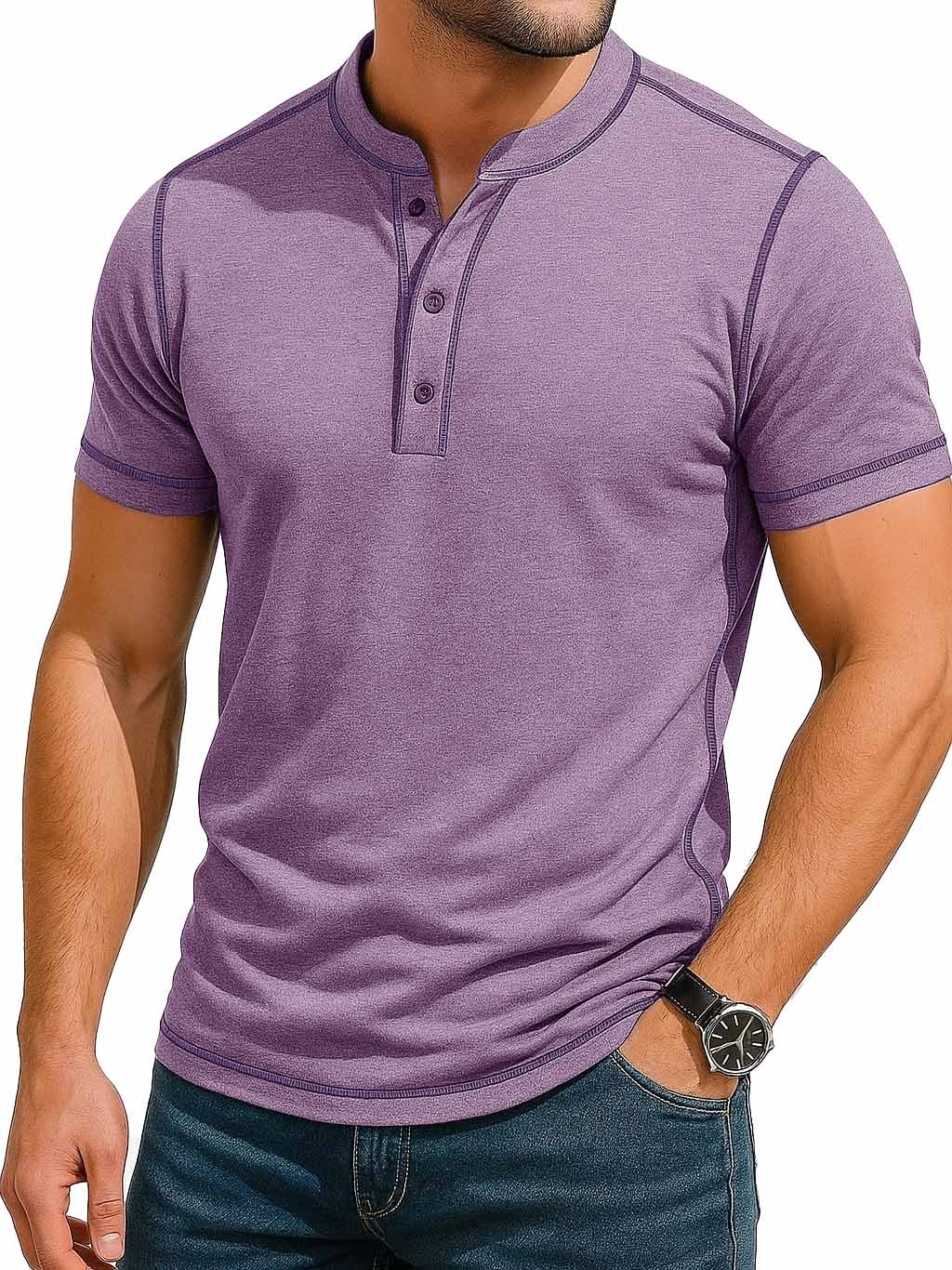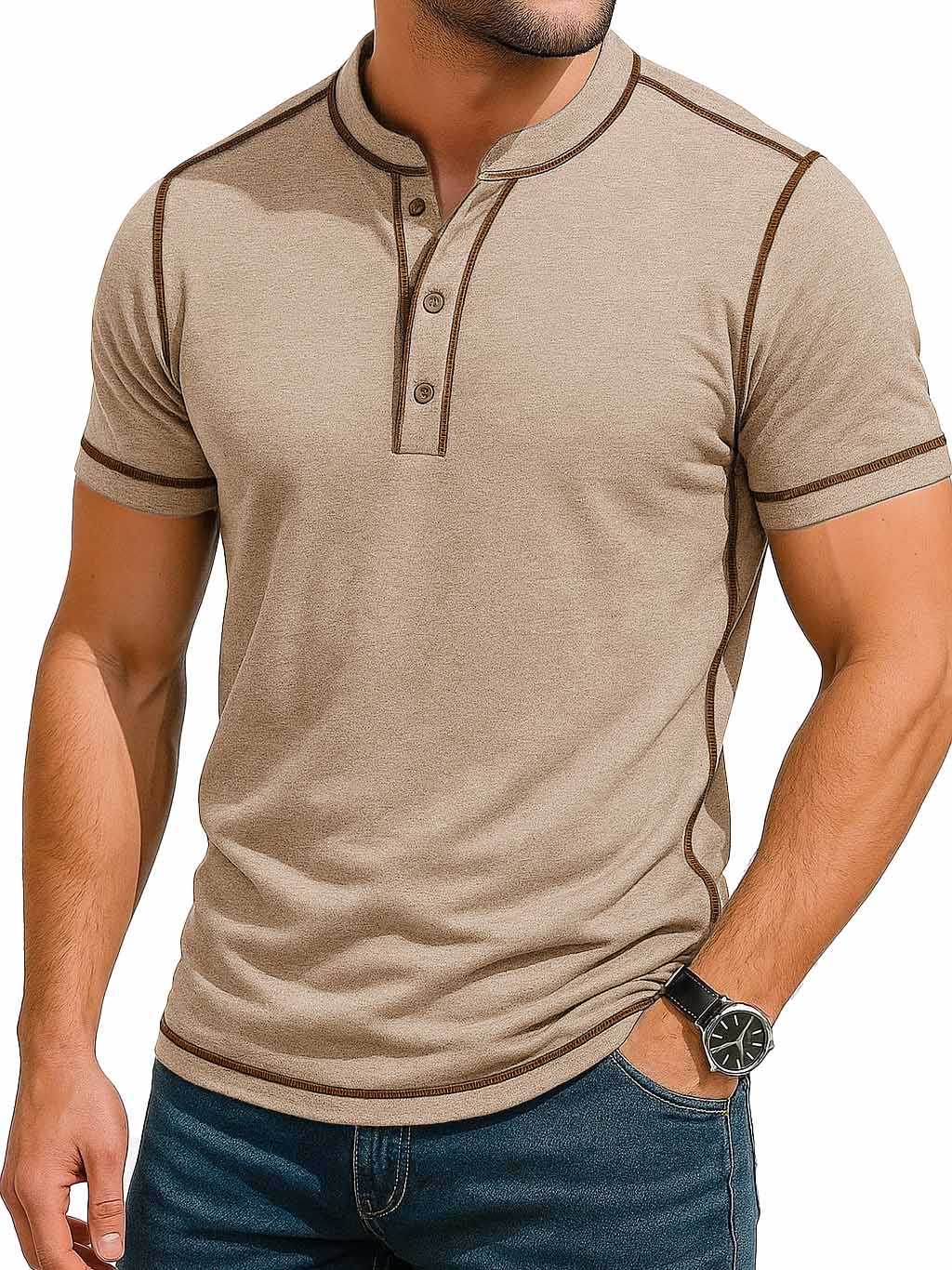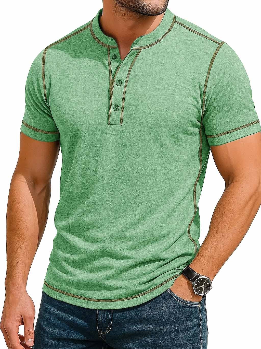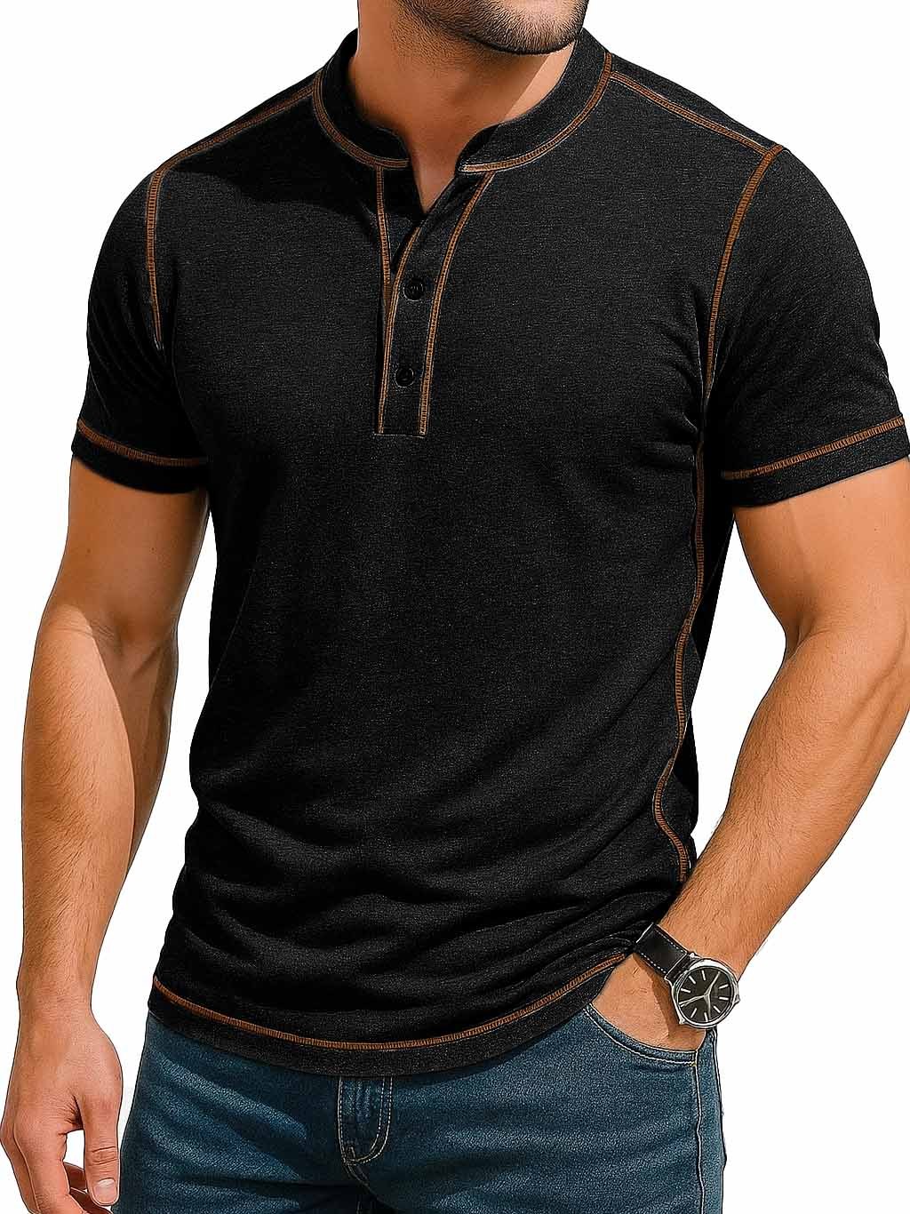 Men's Fashion Retro Contrast Color Line Short Sleeve Henley Shirt