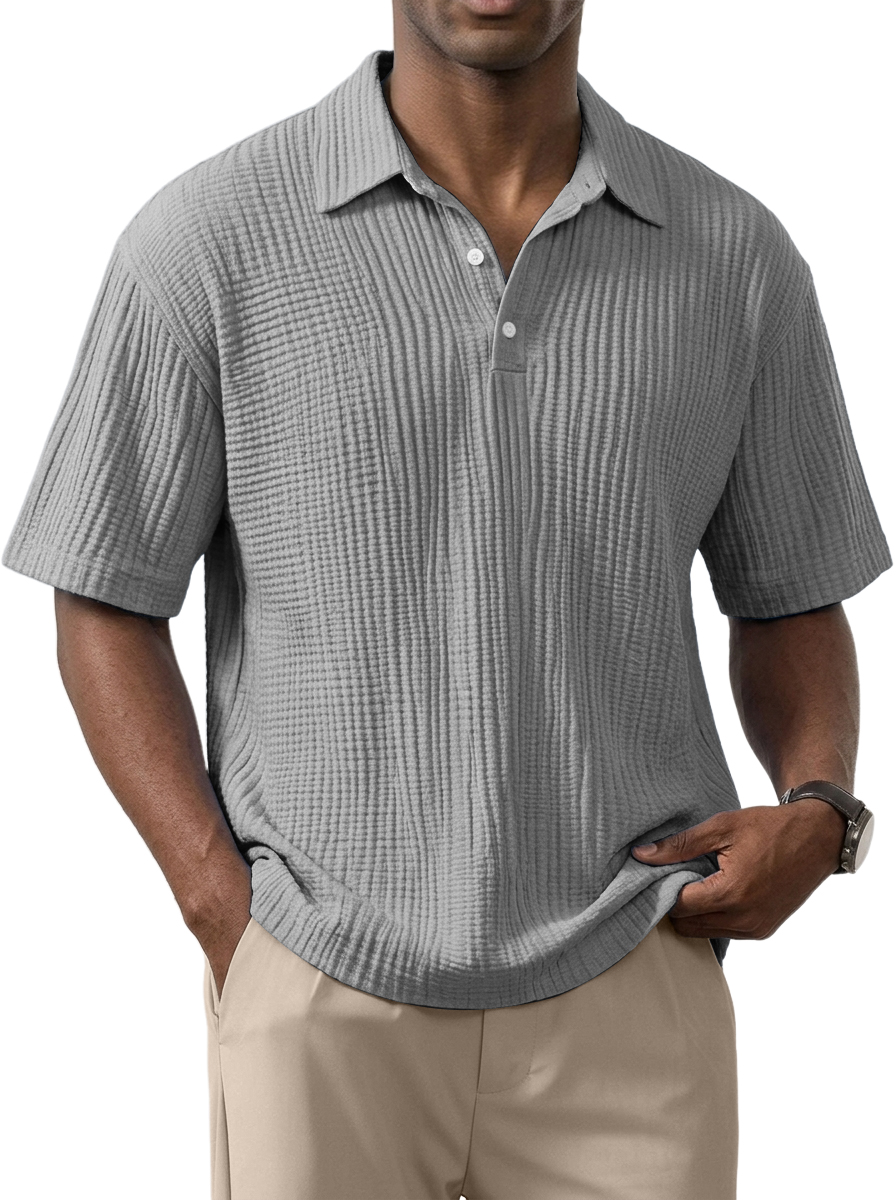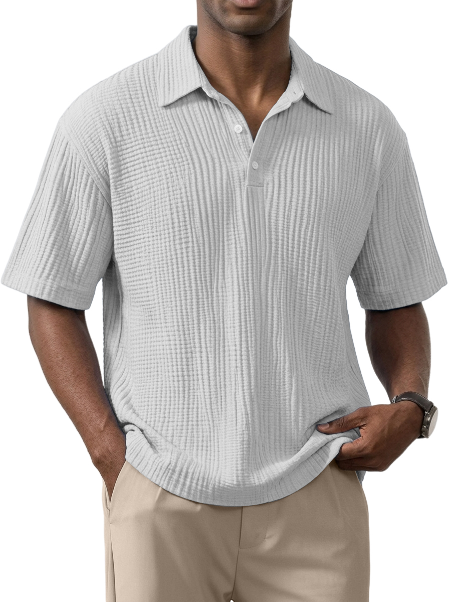 Men's Simple Everyday Loose Fit Textured Short Sleeve Polo Shirt