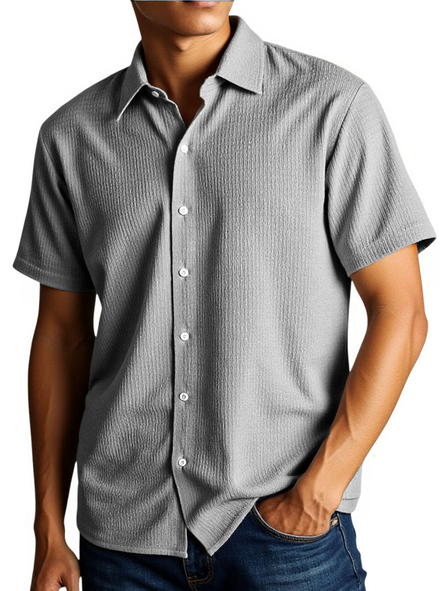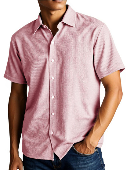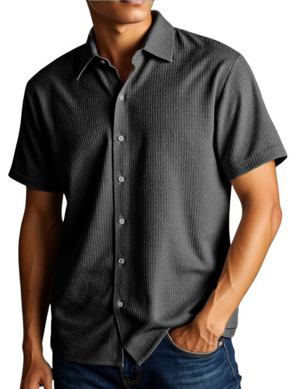 Men's Stylish And Comfortable Everyday Texture Fabric Short-sleeved Lapel Shirt