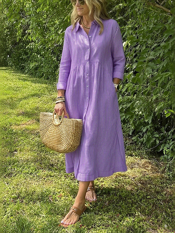 The Long Sleeve Striped Lapel Button Down Dress is designed for the modern woman who cares about sophistication and style. The elegant Maxi long dress is perfect for any occasion.