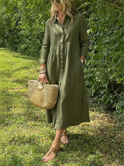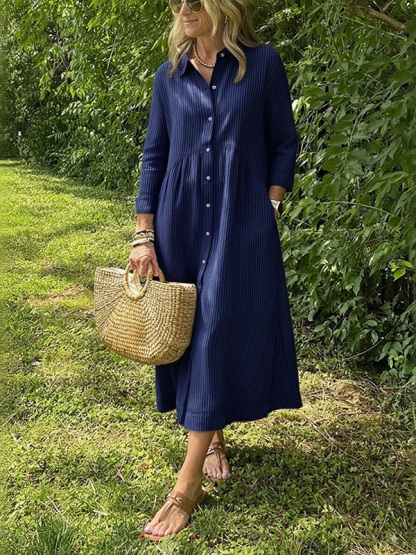 Timeless Elegance: Long Sleeve Striped Lapel Button Down Dress