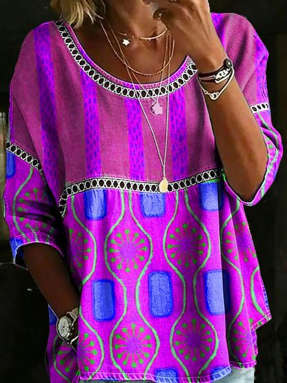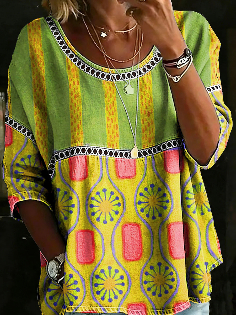 New Arrivals🔥 Women's Vintage Abstrct Casual Loose Denim Blouse Shirt