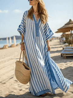 NEW🔥Women's Vintage Striped Art Casual Cotton Long Dress